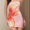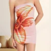 Women Flower Tube Top Dress Slim Off Shoulder Sleeveless Backless Mini Bodycon Dress for Party Club