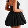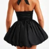 Classic solid color, drawstring back, bandage halter and backless, bubble hem; Sleeveless dresses for women; Backless dresses for women; Mini length design easily shows your charming curves, perfect addition to your closet