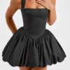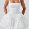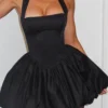 Women Sleeveless Halter Dress Summer Casual Tie up Backless Corset Bubble Party Dress for Beach Club Streetwear