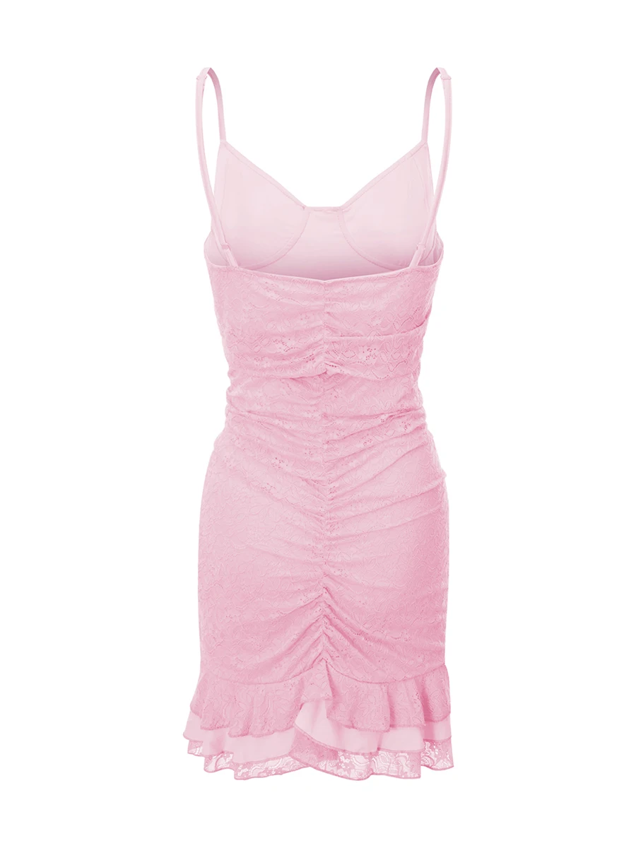 Women Lace White Dress Spaghetti Strap Corset Bodycon Layered Ruffle Mini Dress Summer Sexy Elegant Party Evening Dresses