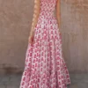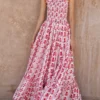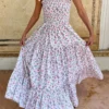 Floral print, bandage straps and sleeveless, smocked, summer dresses for women, beach dresses for women, vacation dresses for women, A-line and ankle length design, make your legs more slender and slim.
