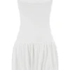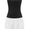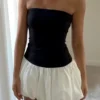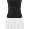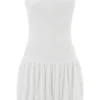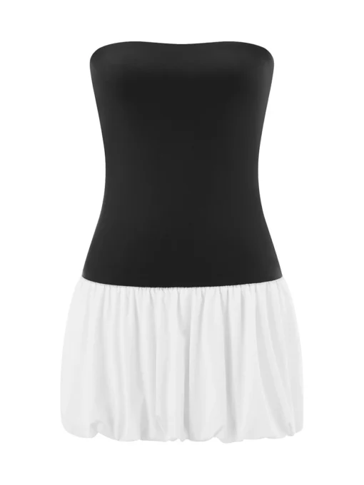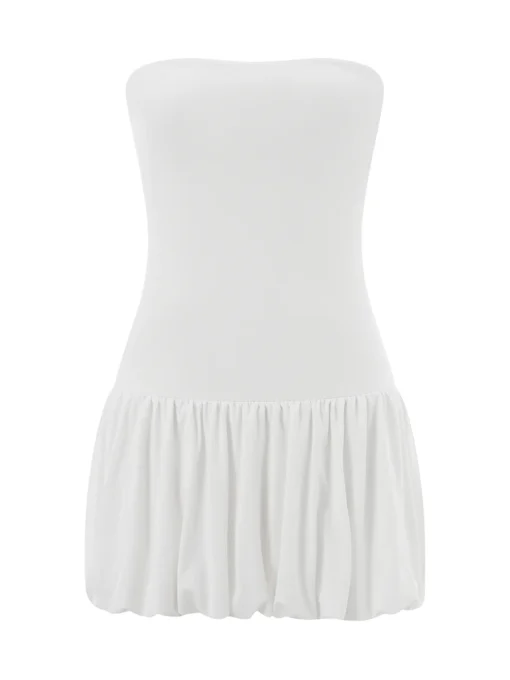 Women Strapless Mini Dress Summer Solid Color Puff Bubble Party Dress for Cocktail Beach Streetwear