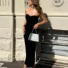Women Y2K Knitted Long Dress Solid Color Strapless Bodycon Pencil Slit Tube Dress Summer Fall Sexy Elegant Chic Dresses Female