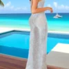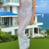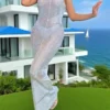 Women’s Long Slim Cocktail Dress Sleeveless Round Neck Sheer Bodycon Dress
