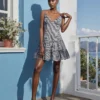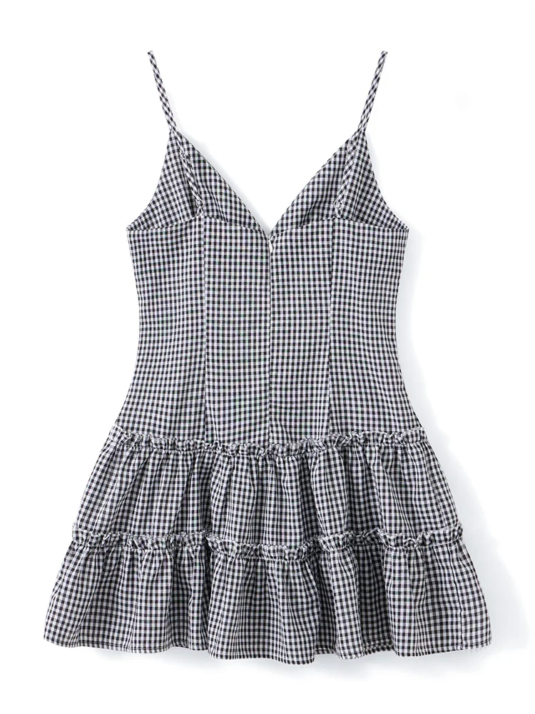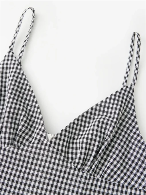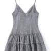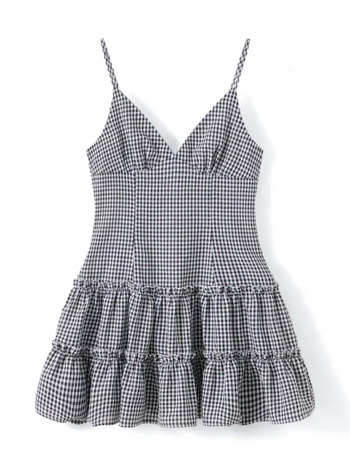 Women’s Ruffle Hem Cami Dress Sleeveless Spaghetti Strap Deep V Neck Mini Dress Going Out Dress